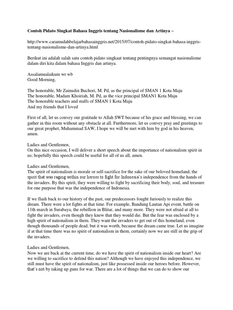 Contoh Pidato Singkat Bahasa Inggris Tentang Nasionalisme Dan Artinya Pdf Indonesian Language Adjective